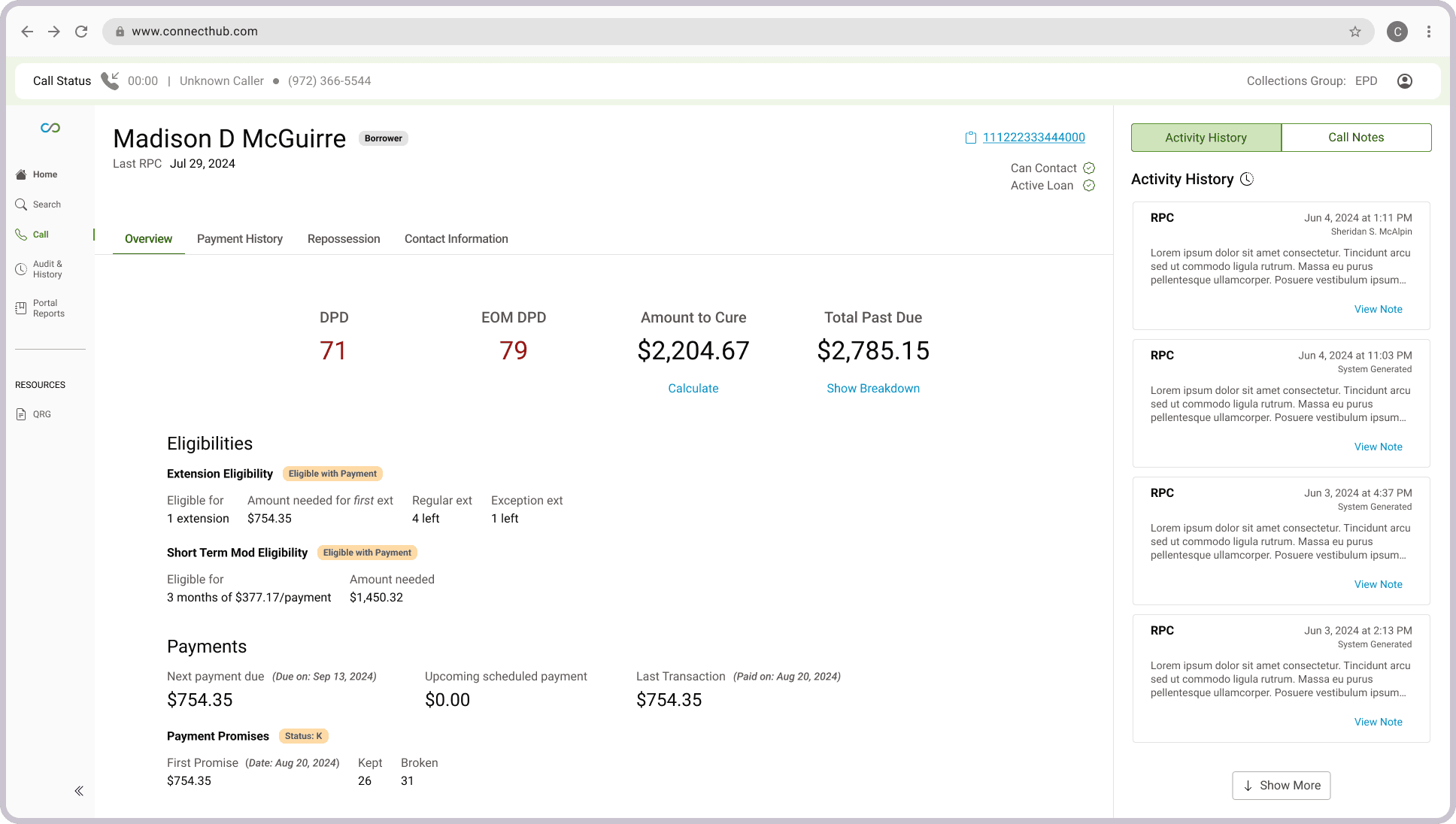 Show Days Past Due on payments during call (update it after actions taken)