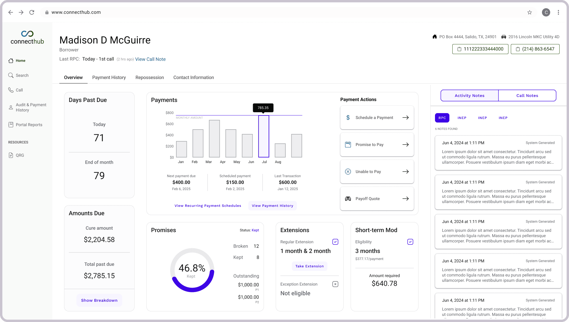 Call service representatives needed a tool that would provide efficiency, simplicity, and relevance to their current phone call process. ConnectHub was to be just that: a way to simplify their daily tasks, streamline data, and reviewing account statuses quickly.