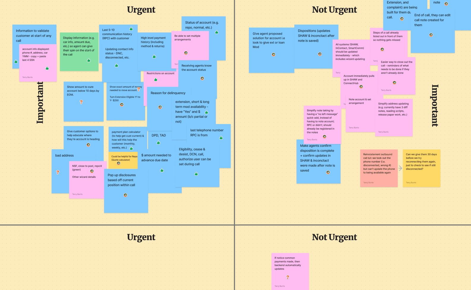 After interviewing some representatives, I used a prioritization matrix with the decision-making group to prioritize what was assumed correctly: