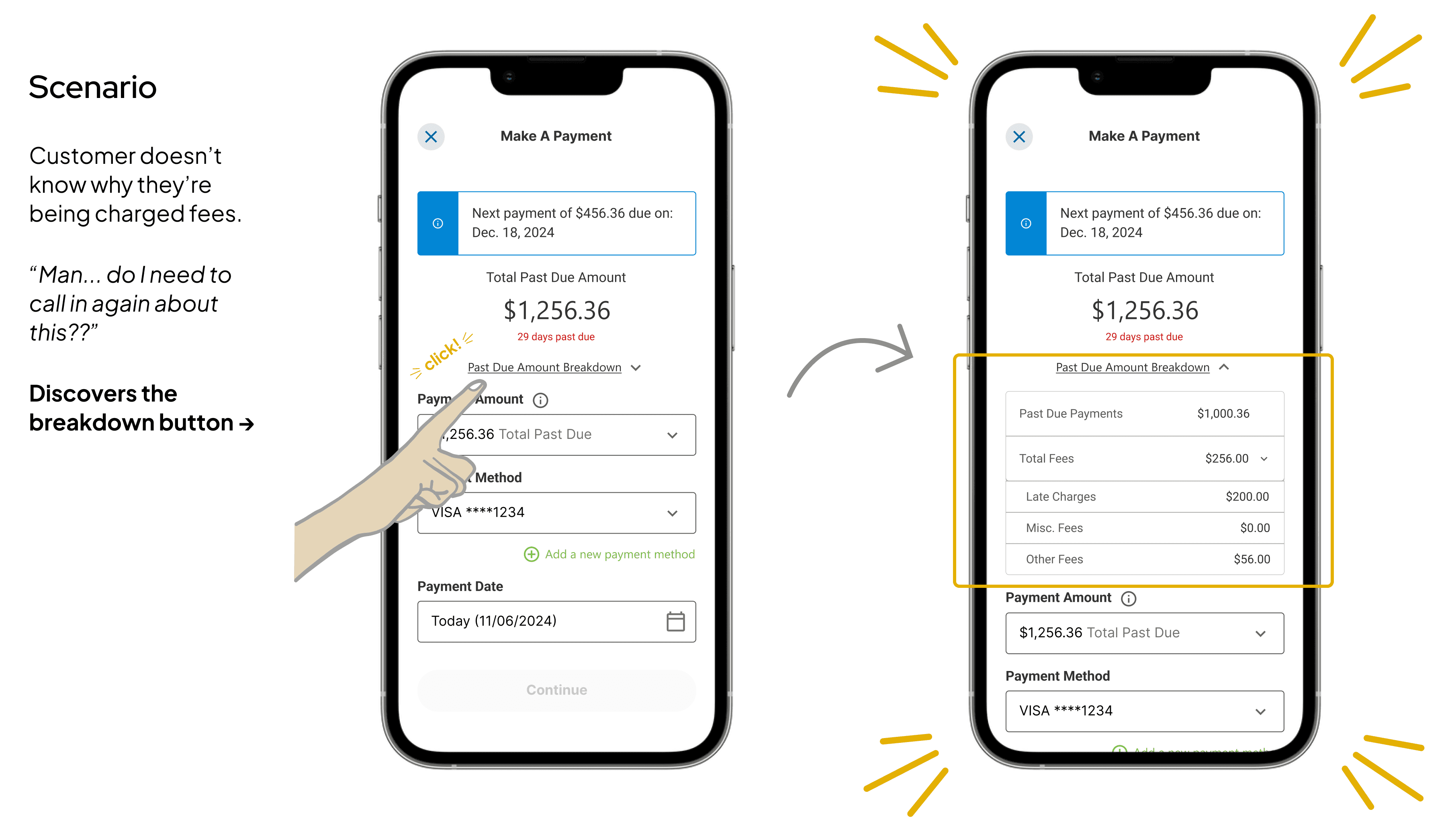 So I decided to opt for watching call service recordings to help empathize with our customers. After hours of listening, I found several issues - payment sync problems (backend), auto-pay visibility gaps, and a critical UX issue: